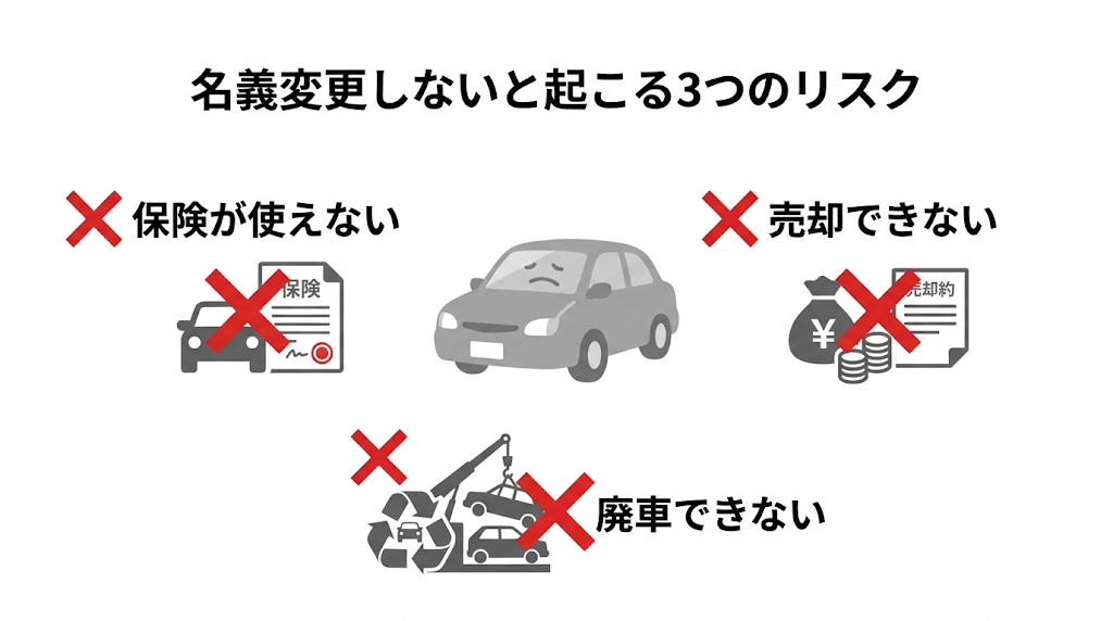 • 名義変更は必須。放置すると売却・廃車・保険対応のすべてに支障が出る